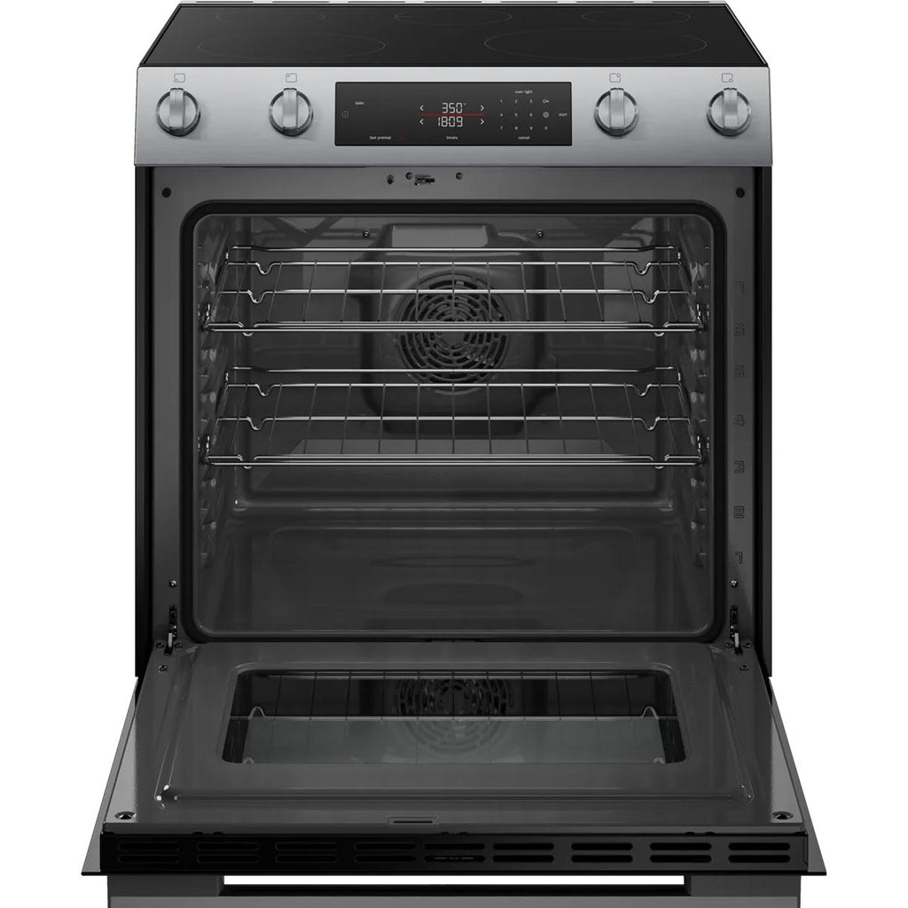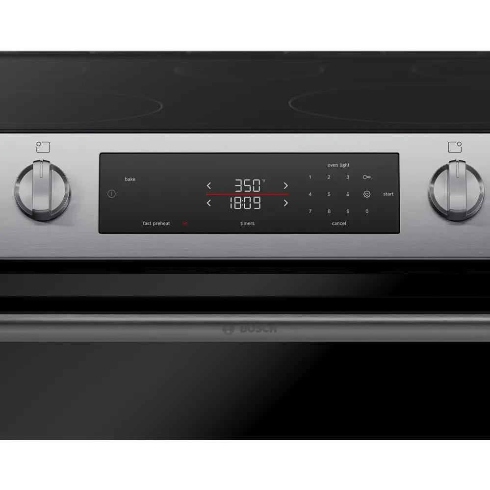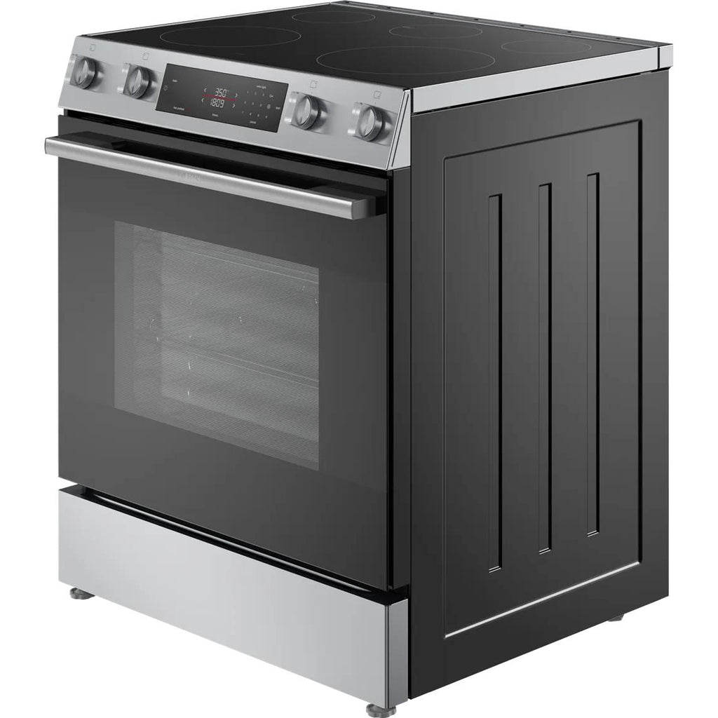 With a spacious 5.8 cu. ft. oven capacity, you can easily prepare large family meals or multiple dishes at once. The self-cleaning function takes the hassle out of maintenance, keeping your oven spotless with minimal effort. Stylish and efficient, this Bosch range combines innovation with ease, making it a must-have for any home chef.