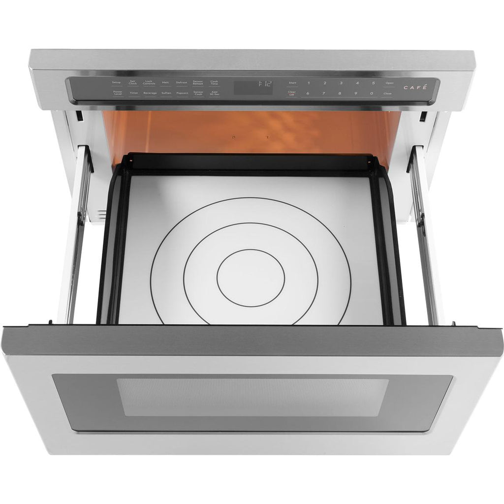 Café 1.2 cu. ft. Built-In Microwave Drawer has plenty of capacity for your favorite dishes. This easy open microwave extends like a cabinet drawer and sits under the counter for added convenience and easy access. The microwave sensor cooking automatically adjusts the time and power for delicious results with packaged foods, leftovers and more. Sleek touch controls make the microwave easy to use and clean.