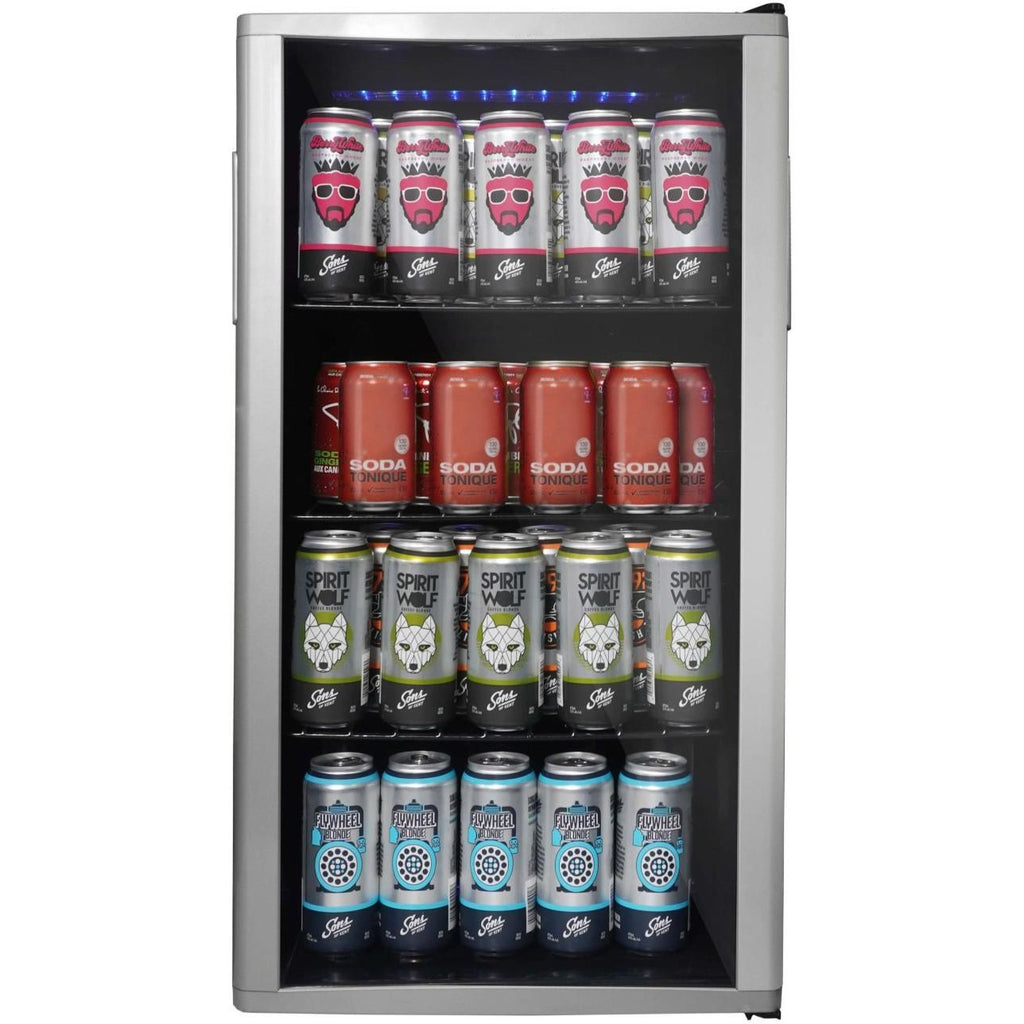 Whether you find yourself entertaining guests or needing more convenient refrigeration for your family, this supreme beverage center delivers style and practicality. This beverage center is perfect for kitchen organization and hosting in small spaces such as an apartment, condo, or cottage! Save fridge space for food or leftovers with this spacious unit offering 3.5 cubic feet (93 L) of cooling and storage space. Cool up to 120 (355 ml) beverage cans under energy-efficient LED lights on three wired shelves. Designed with an adjustable temperature range, this beer chiller can be set anywhere between 39°F – 64°F (4°C – 18°C). This small refrigerator also features a clever, reversible door hinge that enables you to adjust it for a left or right-handed opening.
