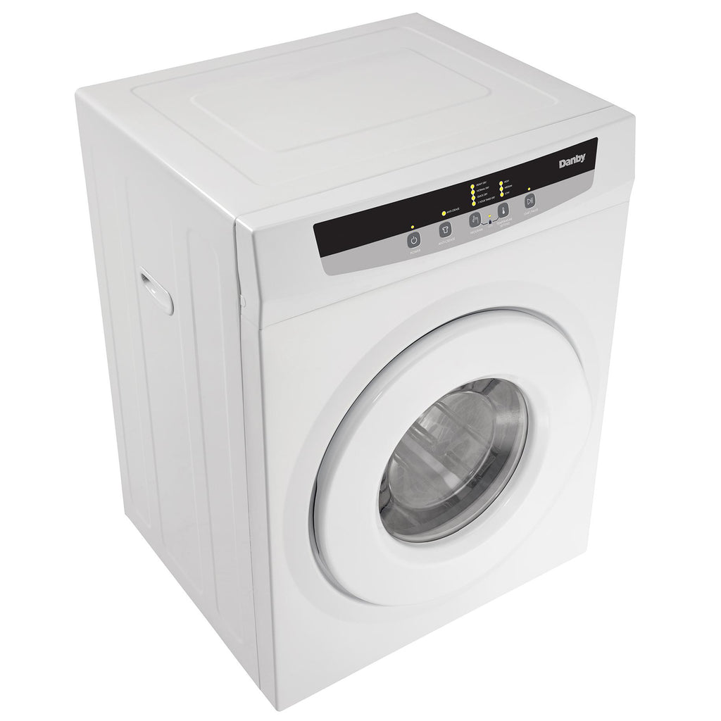This is laundry made easy with the 110V portable dryer by Danby. This convenient and compact model can be installed easily and quickly by simply venting the unit through a sliding door or window and plugging into a standard plug. This sleek machine offers 4 different drying programs along with 3 temperature settings to make sure your clothes receive the proper care. They’re all programmed by the unit’s smart electronic-control system and can be set with the touch of a button. The sturdy and quiet appliance can handle up to 13.2 lbs (6.0 kg) of wash in its stainless-steel drum and the steel cabinet is made with rust-resistant galvanized steel. Additional convenience comes in the form of a wall mounting kit that frees up floor space. This fashionable clothes dryer is easy to transport with its convenient castors.