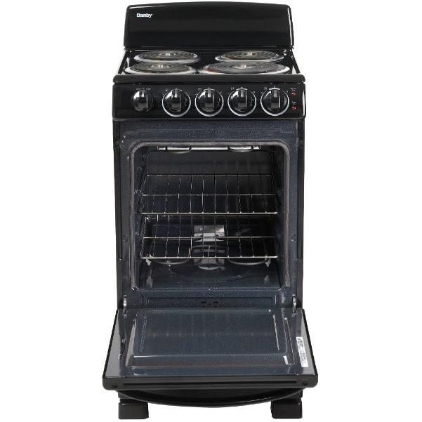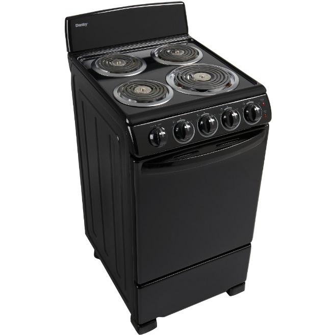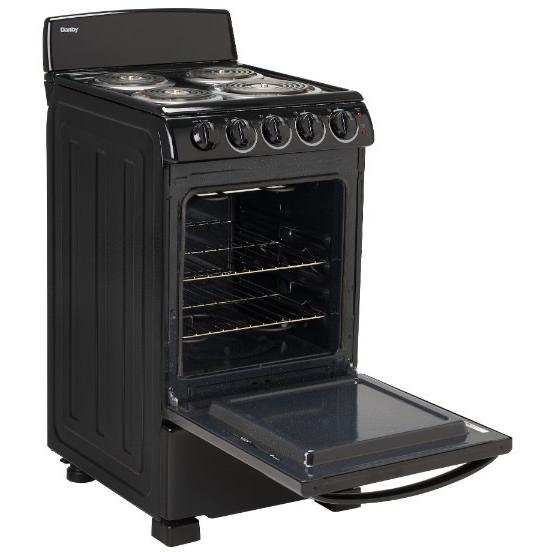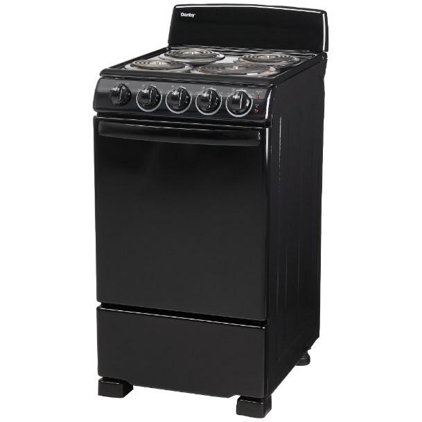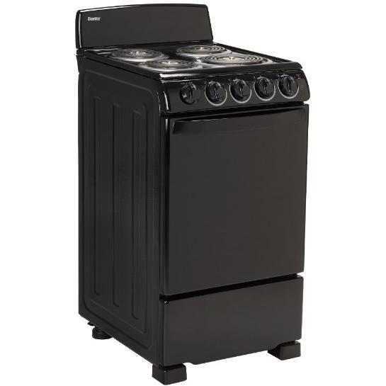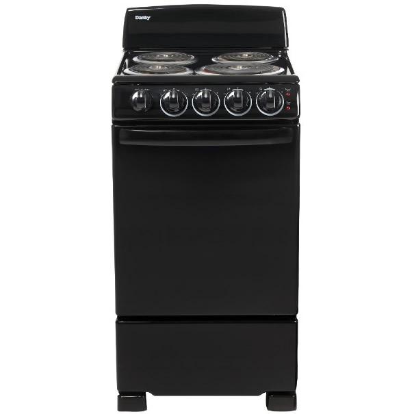This attractive model may only be 20" wide, but it comes with everything you need for fine dining. This Danby range features one eight-inch coil element and the other three being six-inches. This trendy appliance provides 2.3 cubic feet of oven space making it ideal for smaller areas such as apartments or cottages. It boasts an easy-to-clean porcelain cooking top. The oven temperature range is between 250°F and 500°F while the broiler can dish out 2,400 watts of power. This dependable electric range comes with push-and-turn knobs for added safety and includes two oven racks with four adjustable positions and safety stops for optimal cooking.