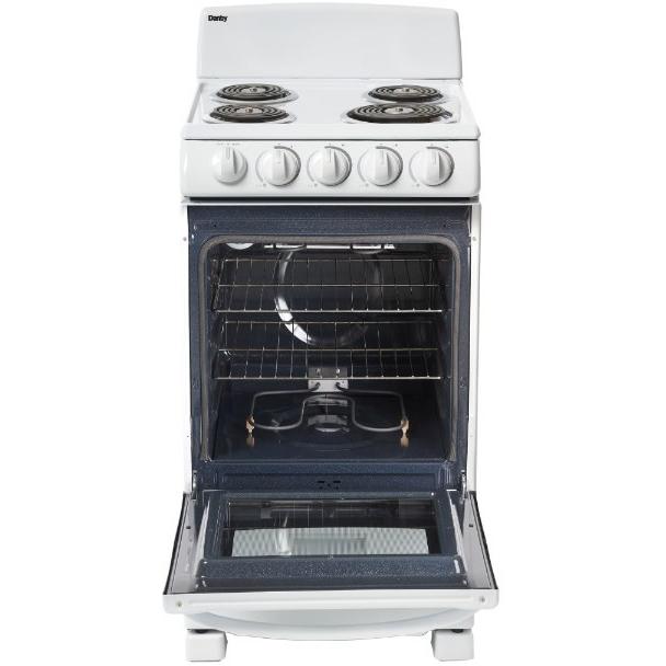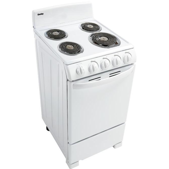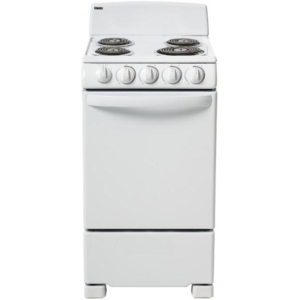 This attractive model may only be 20" wide, but it comes with everything you need for fine dining. This Danby range features one eight-inch coil element and the other three being six-inches. This trendy appliance provides 2.3 cubic feet of oven space making it ideal for smaller areas such as apartments or cottages. It boasts an easy-to-clean porcelain cooking top. The oven temperature range is between 250°F and 500°F while the broiler can dish out 2,400 watts of power. This dependable electric range comes with push-and-turn knobs for added safety and includes two oven racks with four adjustable positions and safety stops for optimal cooking.