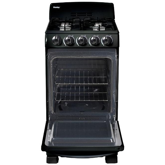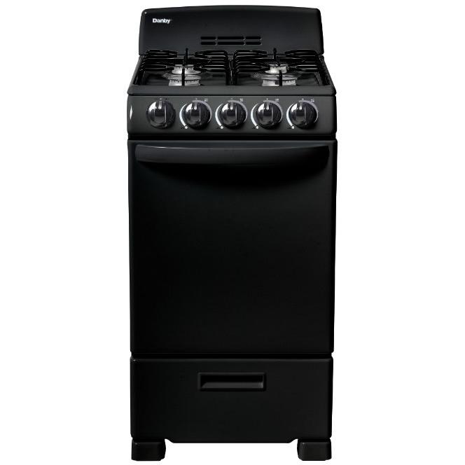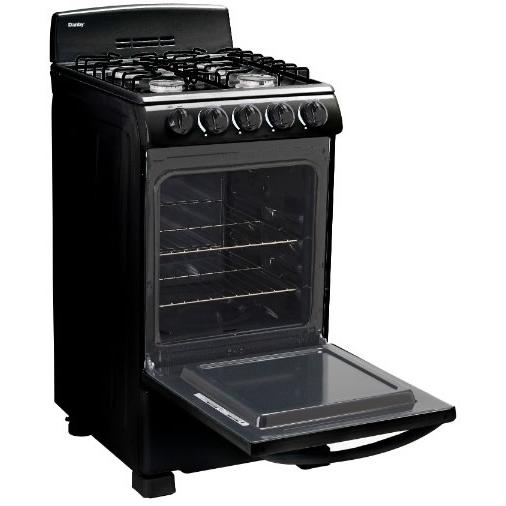 This attractive model may only be 20" wide, but it comes with everything you need for fine dining. This includes an oven and four burners. This trendy appliance provides 2.3 cubic feet of oven space making it ideal for small-space living such as apartments and cottages. It boasts an easy-to-clean pyrolytic blue oven interior for easy clean up. The oven dishes out a powerful 13,000 BTU of baking power. This dependable gas range comes with an angular control panel with push-and-turn front knobs for added safety and includes two oven racks with four adjustable positions and safety stops for optimal cooking.