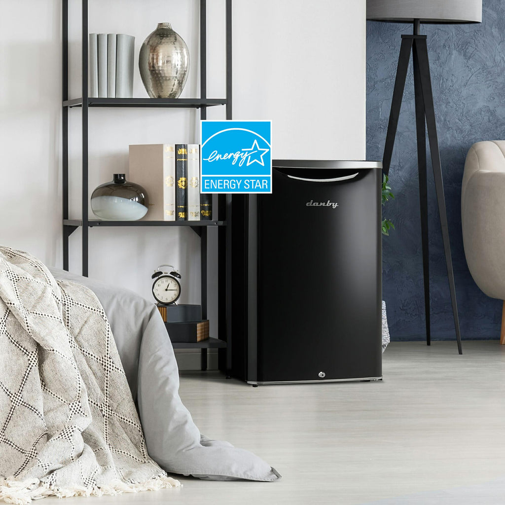 Danby Contemporary Classic collection 4.4 cu. ft. capacity compact all refrigerator. Drawing inspiration from mid-century styling and simplicity to reimagine retro for the modern consumer. Featuring interior white LED light, a vegetable crisper with glass top, CanStor® beverage dispensing system and integrated door shelving with tall bottle storage.