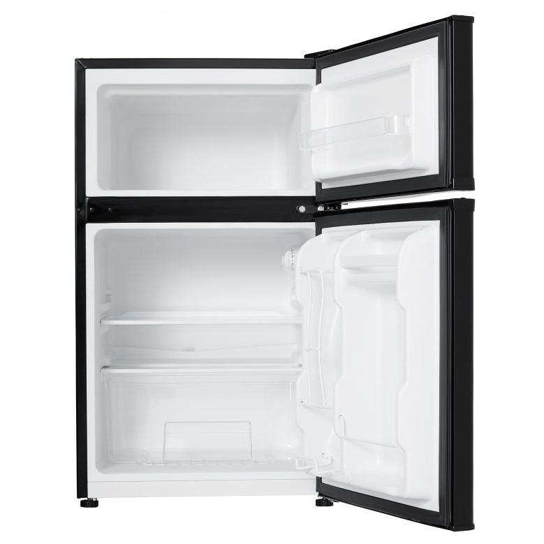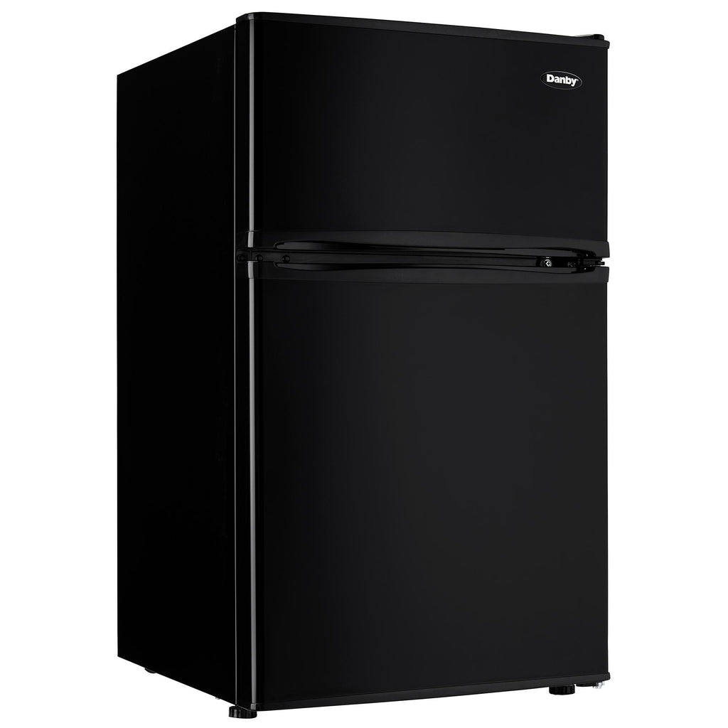 Having separate fridge and freezer units is definitely the way to go these days. You get that convenient combination and much more with this splendid dual-door compact refrigerator by Danby. This model offers 3.2 cu. ft. (90 L) of cooling and freezing capacity and is Energy-Star compliant to help keep electricity costs as low as possible. The popular appliance is a perfect match for apartments, rec-rooms, bars, cottages and offices. It has a high-tech mechanical thermostat to make sure your foods are always stored at the correct temperature and has a handy cycle defrosting system. It comes with an intelligent reversible-door feature which allows you to adjust it for either left or right-handed opening. Inside the appliance you’ll find a bright interior light as well as a see-through vegetable crisper with glass cover and plenty of space for tall bottles. The integrated door handle adds another touch of class.