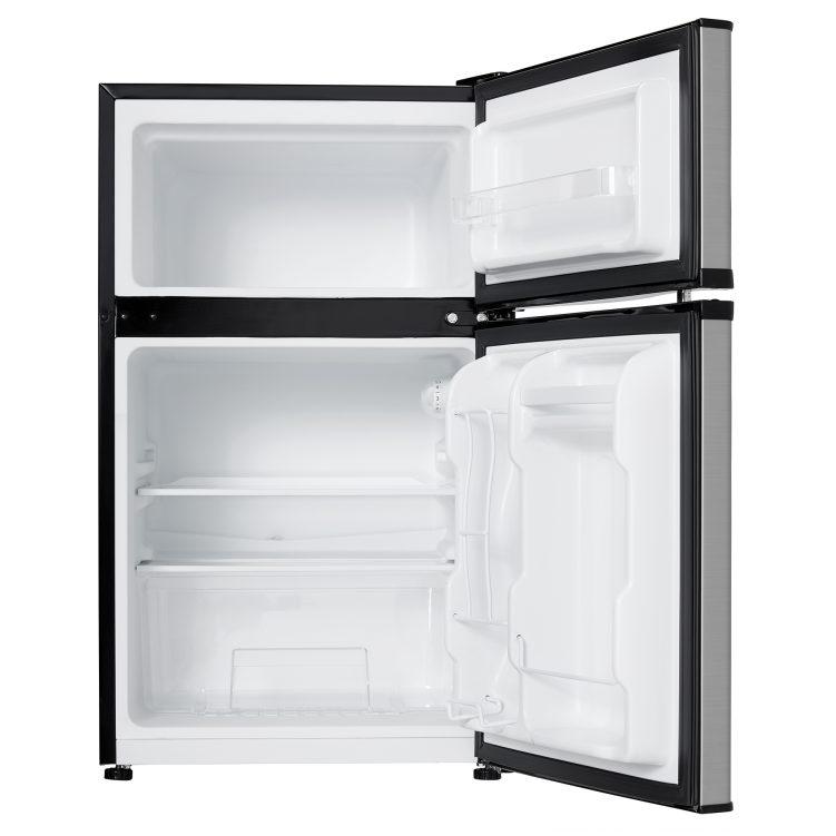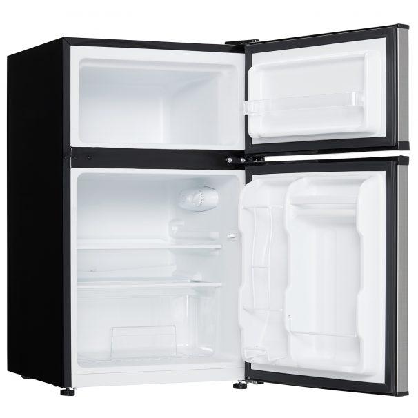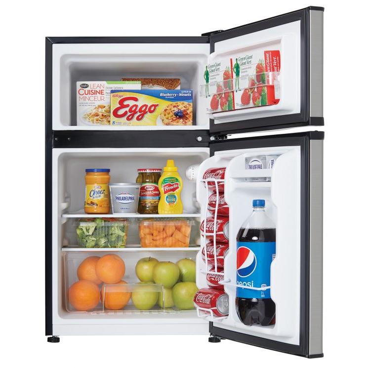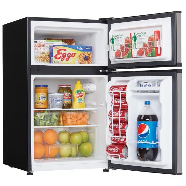 Having separate fridge and freezer in one units is definitely the way to go these days. This dual-door compact refrigerator by Danby offers just the convenience you need and so much more. This model offers 3.2 cu. ft. (90 L) as well as 0.91 cu. ft. (28.8 L) of freezer space. The popular appliance is a perfect match for apartments, rec-rooms, bars, cottages and offices. It has a high-tech mechanical thermostat to make sure your foods are always stored at the correct temperature and a manual defrosting system. It comes with a reversible-door to allows you to adjust it for either left or right-handed opening. Inside the appliance you’ll find a bright interior light, 1 full width and 1 half width glass shelves, integrated door shelving with tall bottle storage as well as the CanStor® beverage dispenser.