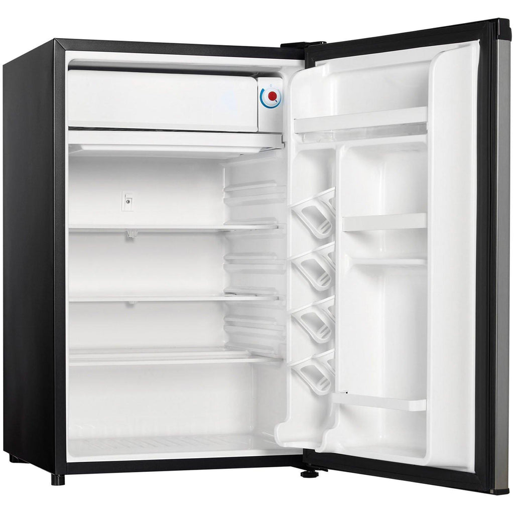 Danby's large capacity, counter-high fridge offers plenty of additional refrigeration in a compact space. Suitable for rec-rooms, dens and workshops this 4.4 cu. ft. model includes the patented Canstor® beverage dispenser, full width freezer section and tall bottle storage.