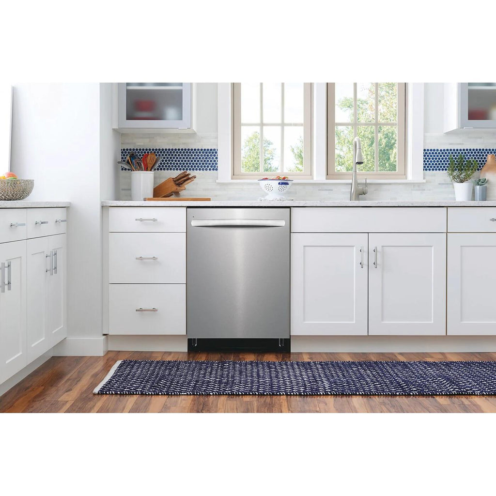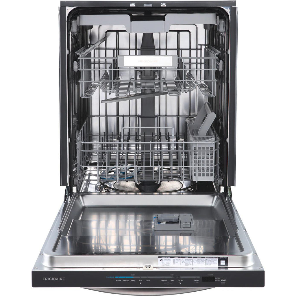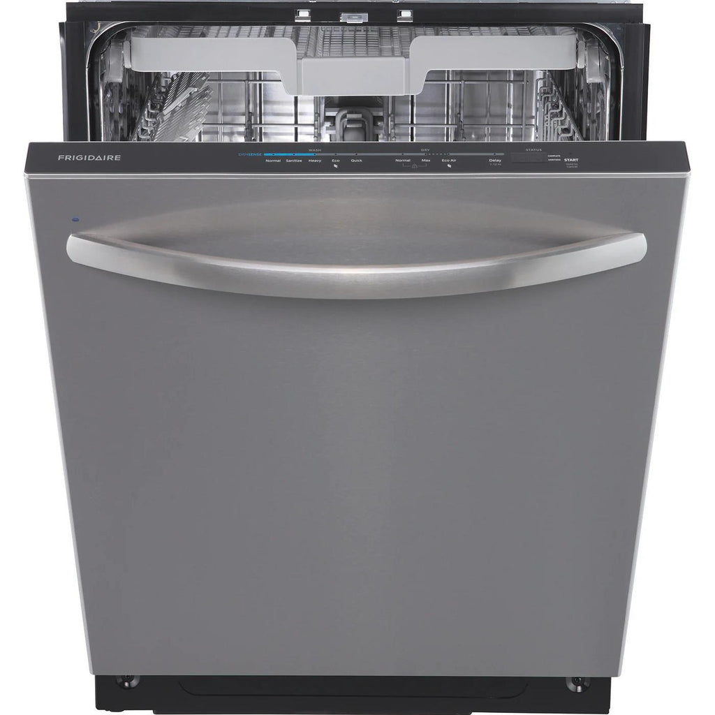 Frigidaire 24-inch Built-In Dishwasher with DishSense® Sensor Technology. Skip the pre-rinse with DishSense® sensor technology that adjusts cleaning performance based on the soil level of your dishes. Run your dishwasher at any time without noise disruption in your home at 49 dBa.