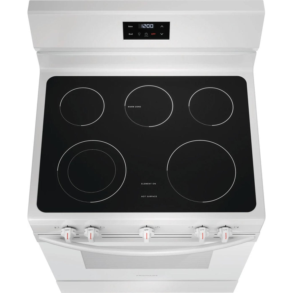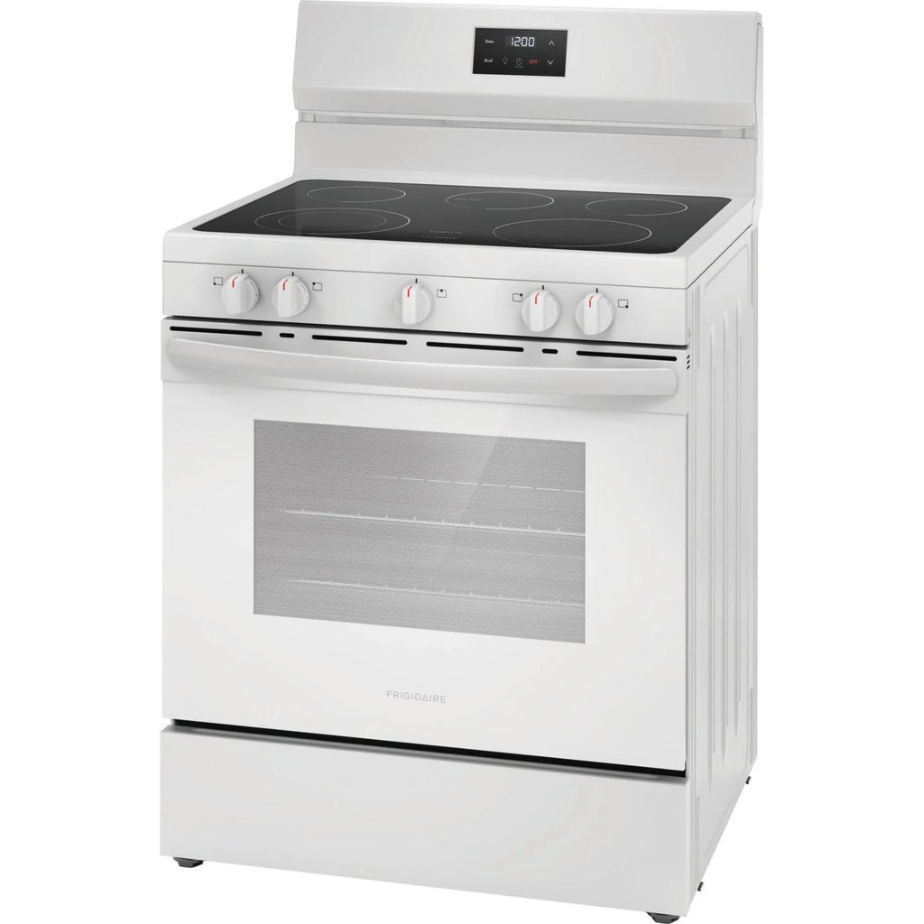 Frigidaire 30-inch freestanding electric range features 5 cooktop elements, Even Baking technology, SpaceWise® dual expandable element and a total oven capacity of 5.3 cu. ft.