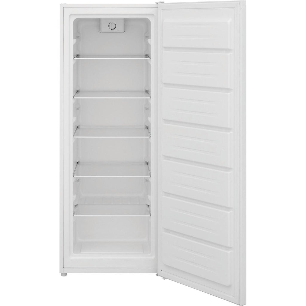 The Frigidaire 7 cu. ft. Garage Ready Upright Freezer is designed to perform efficiently in both hot and cold environments, making it perfect for garages or unheated spaces. It offers ample storage with glass shelves for easy organization and visibility. The manual defrost feature helps prevent ice buildup, ensuring reliable performance. With its energy-efficient design, this freezer provides dependable storage for frozen foods, keeping them fresh and easily accessible year-round.