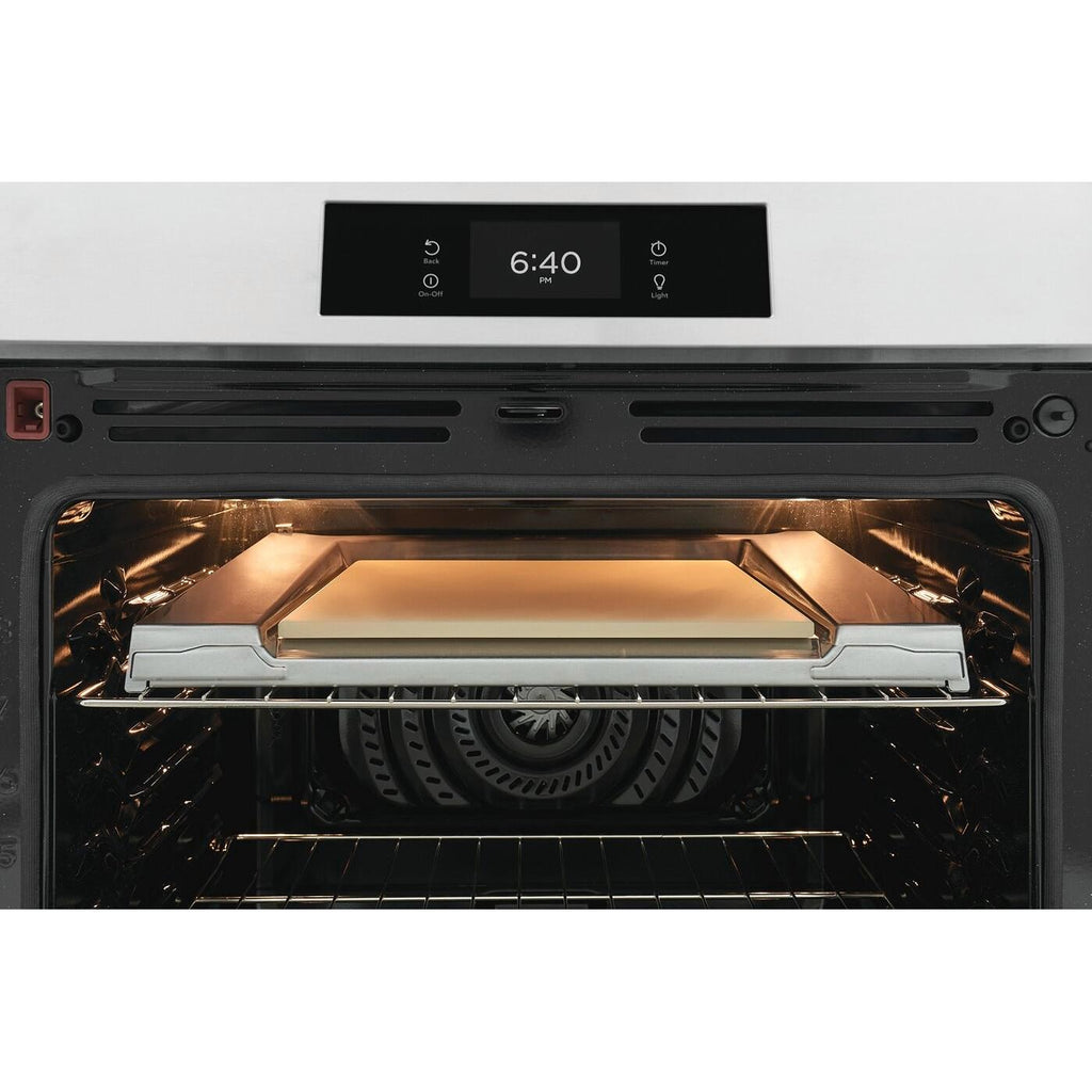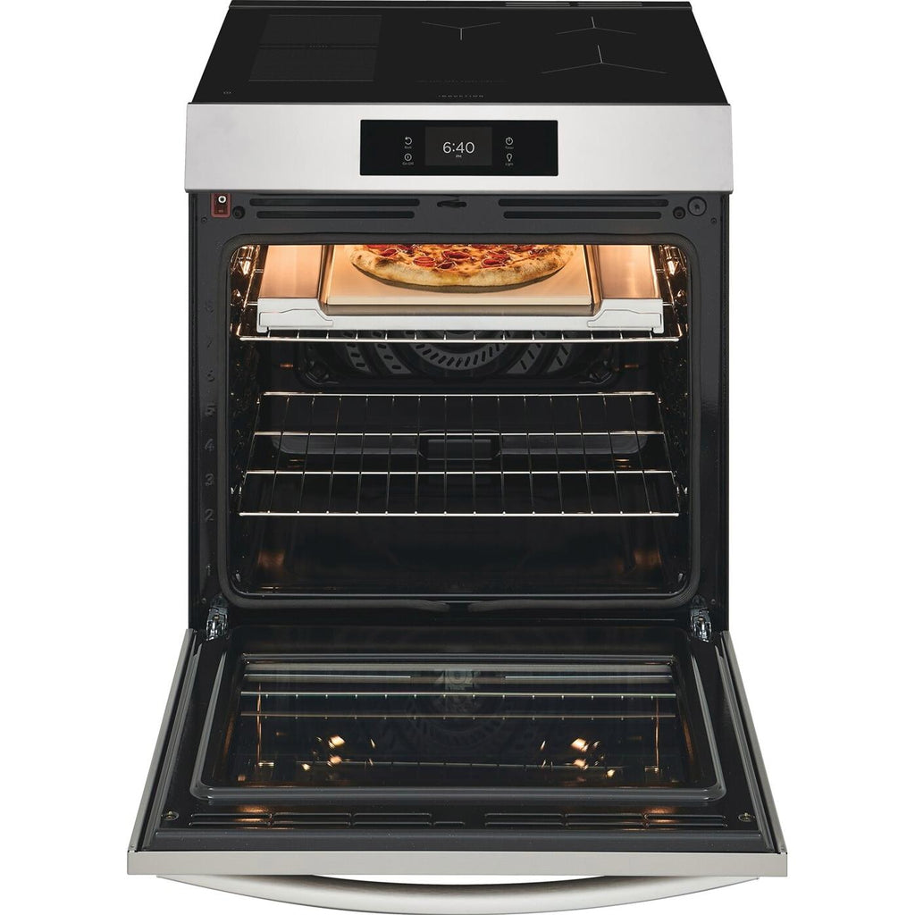 Frigidaire Gallery 30-inch Electric Induction Range with Stone-Baked Pizza. The only range designed to reach temperatures of 750F+, the high-heat needed to create authentic restaurant-quality pizzas, in as little as 2 minutes - right in your oven. Start cooking fresh pizzas immediately - the range comes with our Stone-Baked Pizza Shield, 15" x 15" Stone and Peel.