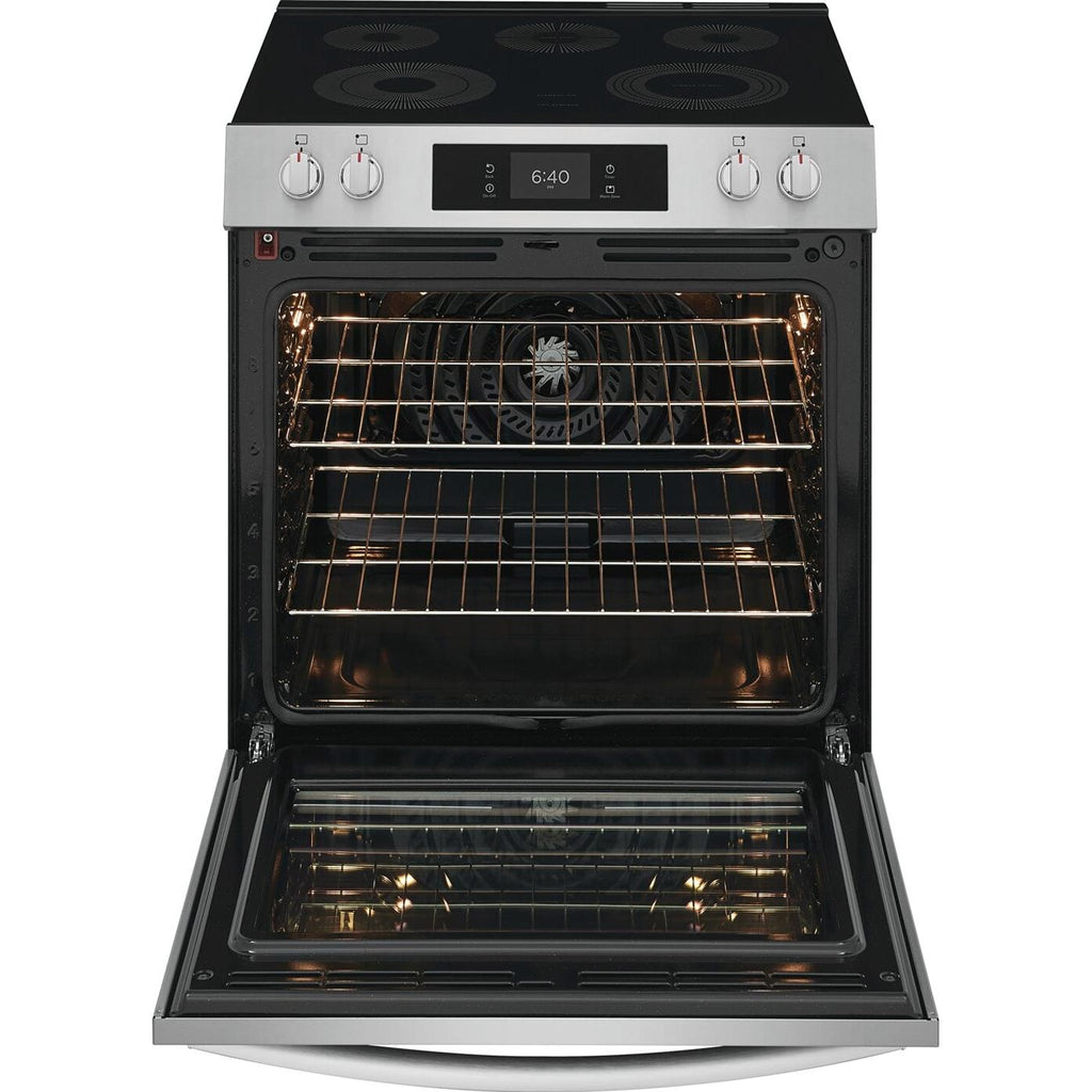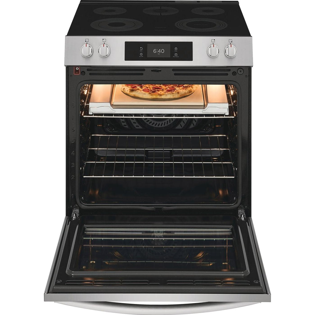 Frigidaire Gallery 30-inch Electric Range with Stone-Baked Pizza. The only range designed to reach temperatures of 750F+, the high-heat needed to create authentic restaurant-quality pizzas, in as little as 2 minutes - right in your oven. Start cooking fresh pizzas immediately - the range comes with our Stone-Baked Pizza Shield, 15" x 15" Stone and Peel.