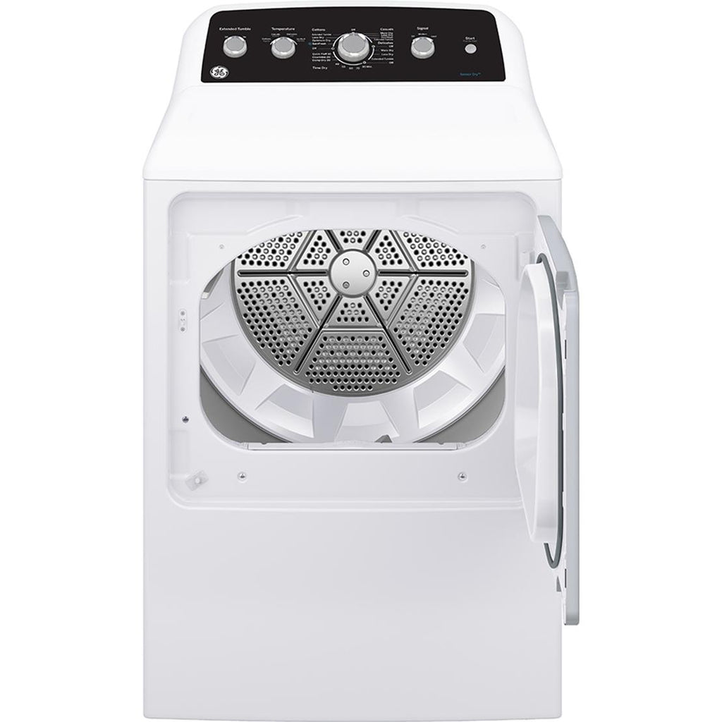 GE 7.2 cu.ft. Top Load Electric Dryer with SaniFresh. Sensor Dry technology automatically detects humidity levels to ensure your clothes reach a desired dryness level every time, so garments are never over-dried. Feel comfort knowing clothes are sanitized and 99.9% of bacteria has been removed.