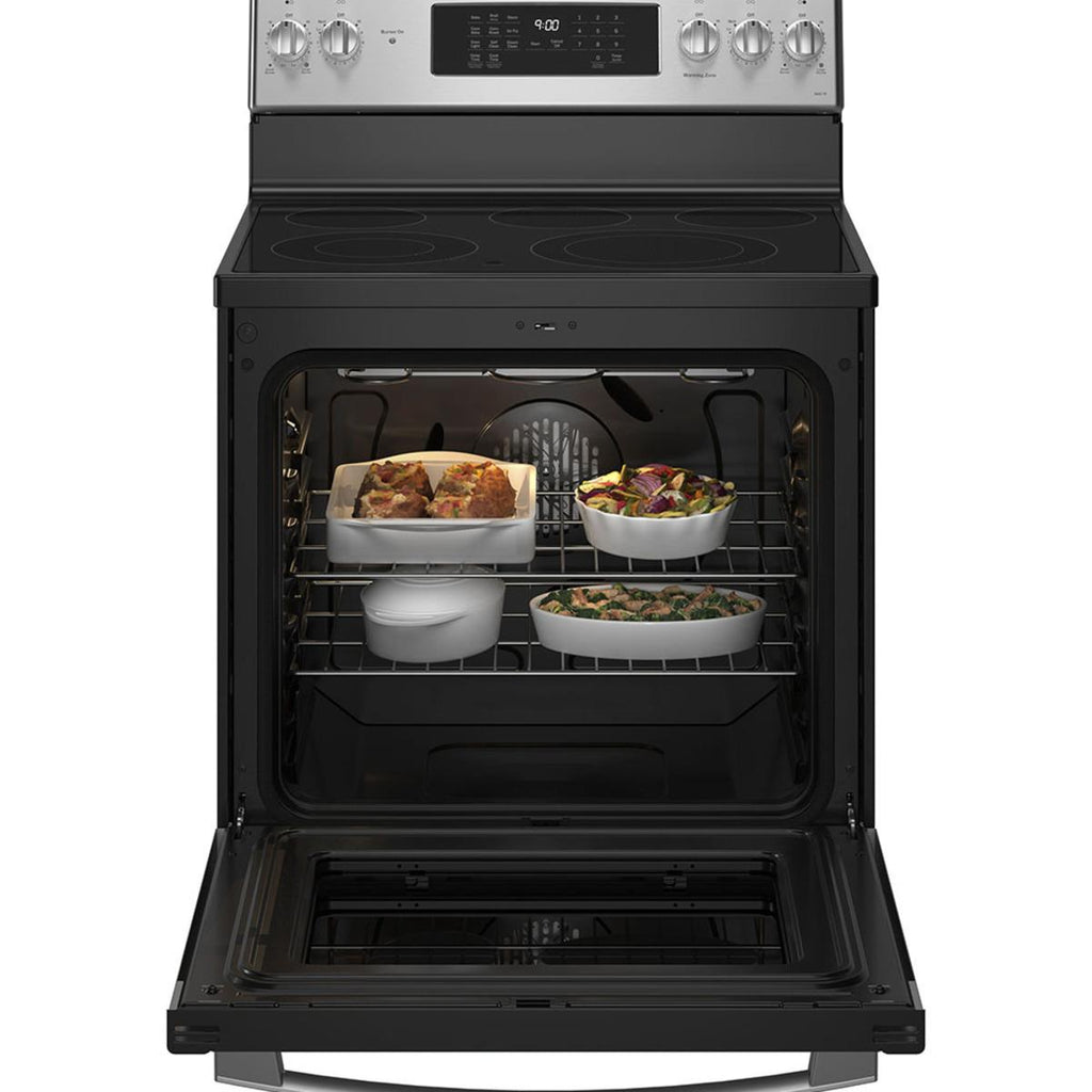 The GE Profile 30” Free Standing Electric True Convection Range offers versatile cooking with a No-Preheat Air Fry function, allowing you to air fry without the need for preheating. The True Convection technology ensures even heat distribution for perfectly cooked meals, while the sleek, modern design complements any kitchen. This range also features a spacious oven and easy-to-use controls, making it ideal for both everyday cooking and special occasions. Perfect for those who want efficiency and convenience in their cooking appliances.