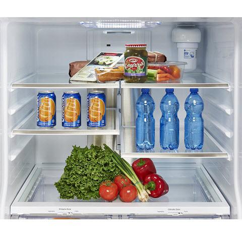Positioned throughout the interior of the refrigerator Ramp Up Theatre LED Lighting slowly illuminates the fresh food compartment, to fully reveal traditionally dark spots.