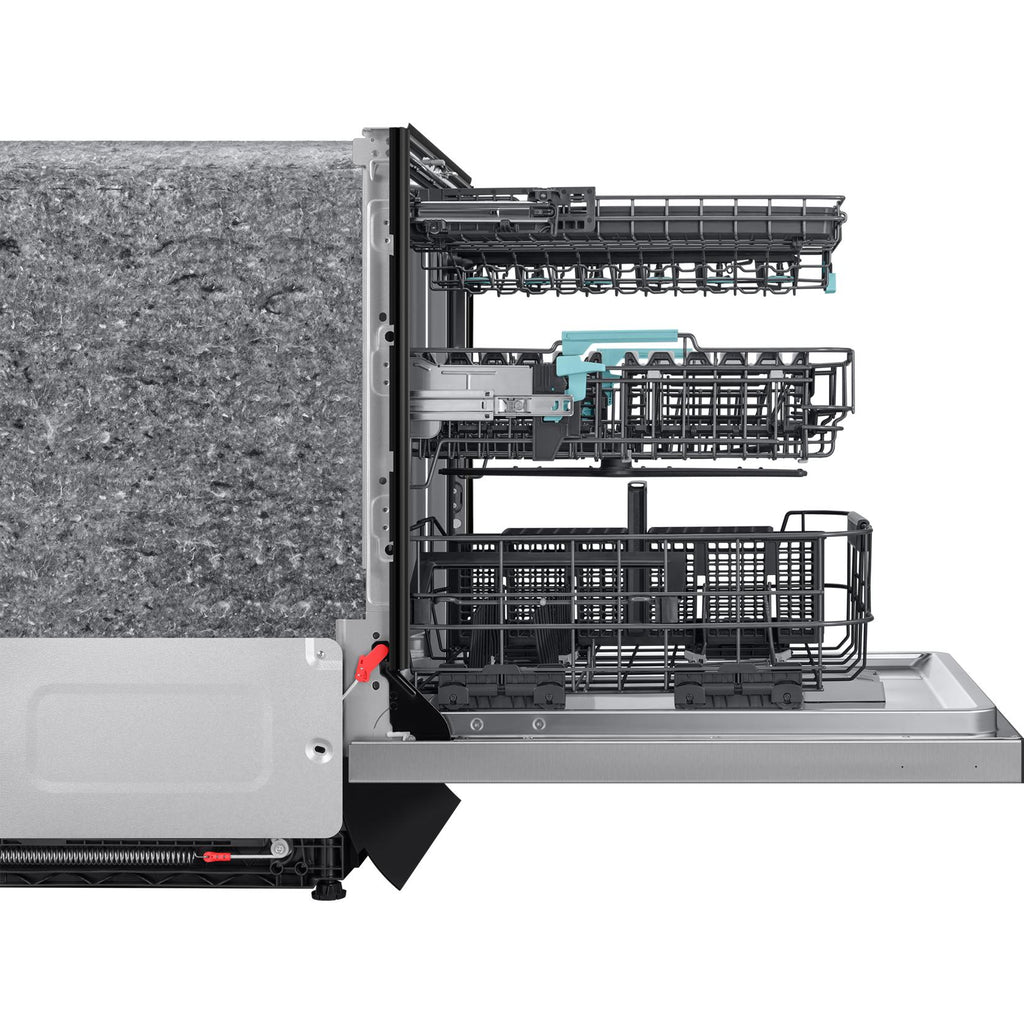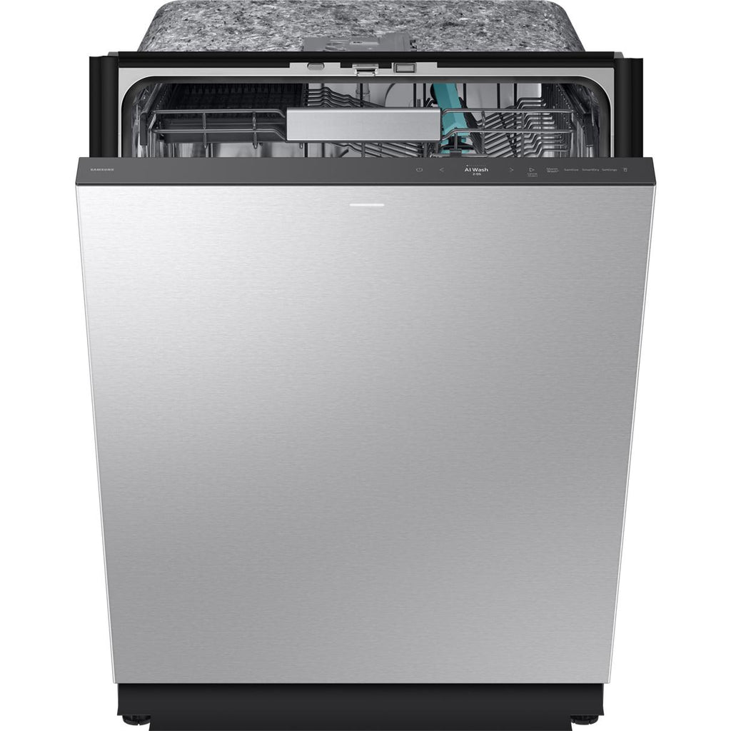 Samsung 24-inch Built-In Auto Open-Door Dishwasher w/AI Wash and Upgraded 3rd Rack Washing System. AI Wash uses a new high-resolution turbidity sensor and machine learning algorithm. It intelligently adjusts the washing and rinsing cycles to clean dishes and remove even stubborn leftover food and sticky residue without pre-rinsing.