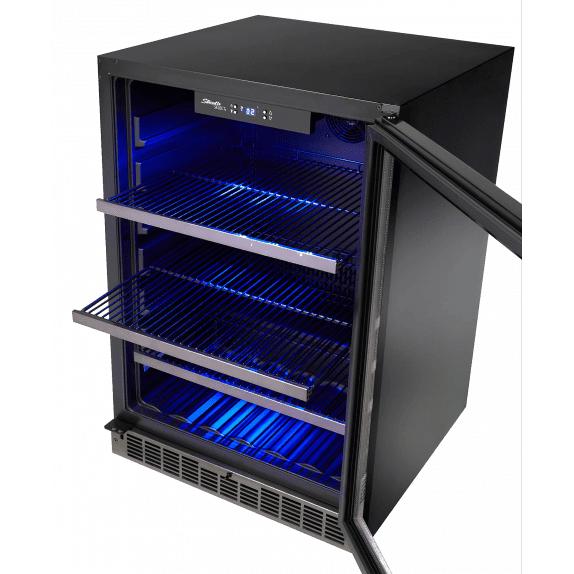 Steel trimmed black wire shelves assist with cold air evenly dissipating throughout the cabinet for rapid cooling of beverages.