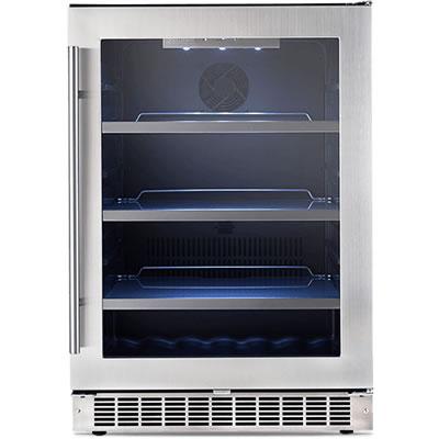 Silhouette 24" single zone beverage centre. Fit for the most discerning beer buff, soda lover or juice enthusiast, this center is equipped to carry a heavy load of beverages. The well-spaced shelves thoughtfully leave room for wine storage at the base of the unit and the tempered glass door keeps your bounty of brews in prime view.