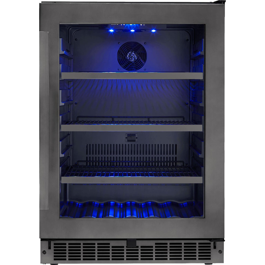 Silhouette Prague 24" single zone beverage center. Named after a city renowned for its delectable beer, stylish structures and generous hospitality, this beverage centre will not disappoint the modish entertainer. The bold contemporary black stainless steel finish with matching handle shines and brings chic sophistication to any décor. With the ability to store up to 138 cans and 6 bottles of wine your guests will never be wanting.