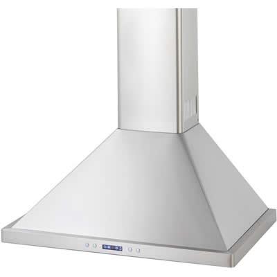 This wall mount chimney range hood with 500 CFM internal blower also features dual centrifugal fans which efficiently remove cooking vapors and smoke, readily accessible front mount controls with LED display and back-lit buttons allow for easy operation.